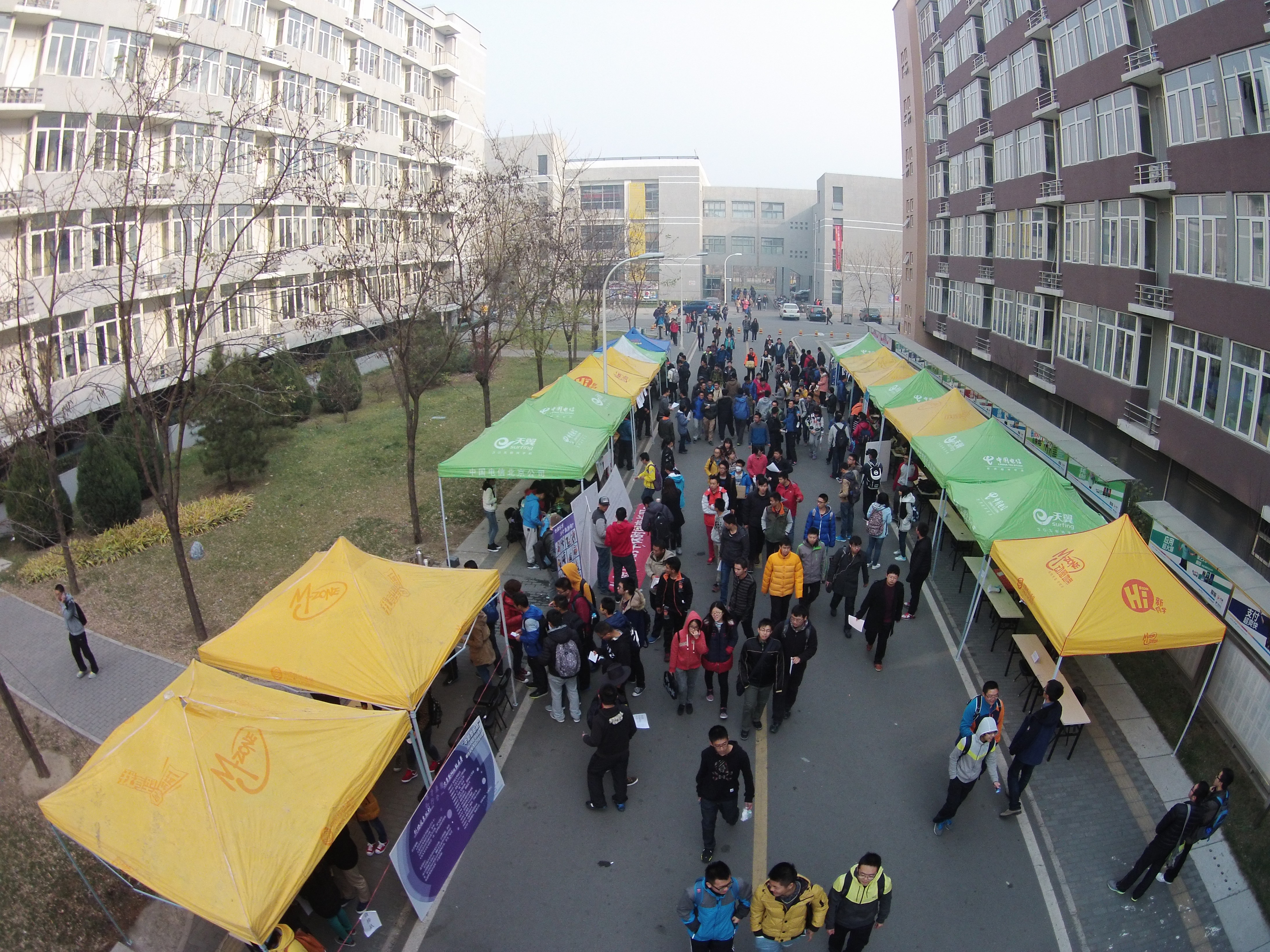 在本次比赛外场宣传活动中,每个班级都以蓬勃朝气彰显青春活力,用满腔热血弘扬“北航四爱”。在1、4号学生公寓之间的马路上,激情澎湃的口号声使得现场气氛热烈非凡。横幅与海报诉说着班级活动的点点滴滴,使同学们体会到了班集体活动的魅力。同学们纷纷驻足观看,置身于青春与激情的海洋。在活动内容上,有以心理健康为主题,主张缓解大学生心理压力的;也有以校园改进为主题,计划BICYCLE整理的等等。道路两侧的投票点,井然有序,为广大学生选择自己喜爱的班级活动提供了良好的平台。宣传活动期间我们用航拍记录全景,用照片铭刻瞬间,将一份份绚烂珍藏。