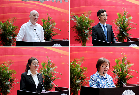 开学典礼上,宇航学院硕士生刘畅代表全体新生表达了成为一名合格北航人的决心与信心,以及对未来学习生活的憧憬和希望。生物与医学工程学院博士生丁希丽代表全体在校生对新同学的到来表示欢迎,她鼓励学弟学妹们怀揣热情,坚守梦想,勇于担当,做一名爱校荣校的北航人。导师代表、电子信息工程学院苏东林教授在发言中建议新同学要紧跟时代步伐,不忘北航人的使命,在深入研究中凝练科学问题,催生科学概念,推动领域发展,把个人的学术研究与国家、国防的追求相结合,更好地实现人生价值。
