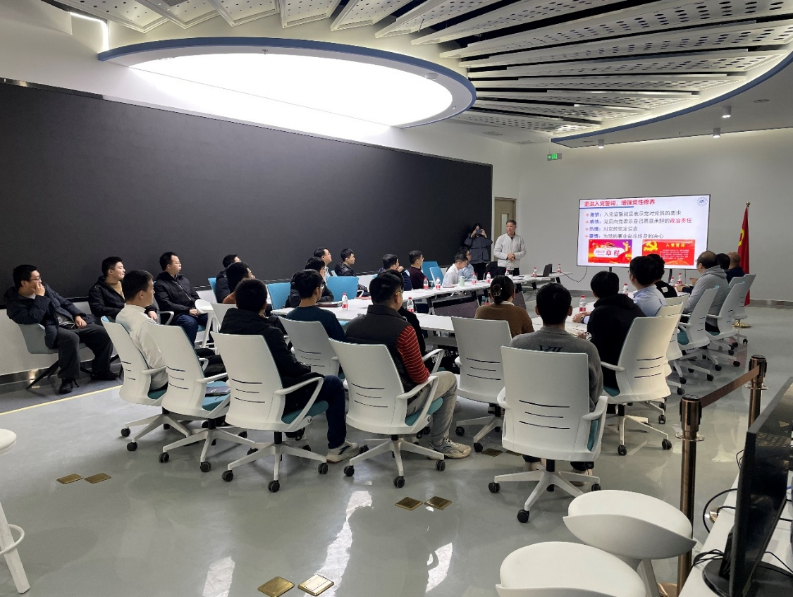 陈老师的讲座得到了在场师生的积极响应。万维锋老师结合自己的入党经历,围绕誓词主题发言。他说:面对鲜红的党旗宣誓,是一名共产党员一生中最光荣最值得纪念的时刻;要始终坚持“不忘初心”,牢记共产党员的使命;作为一名新党员,要牢固树立“四个意识”,坚定“四个自信”,坚决做到“两个维护”,用习近平新时代中国特色社会主义思想凝心铸魂。王振宇等同志表示,通过这次活动更加深刻地认识到一名共产党员的责任和使命,增强了党性修养,提高了思想政治素质;在今后工作中,更加努力地为党和人民的事业奋斗。