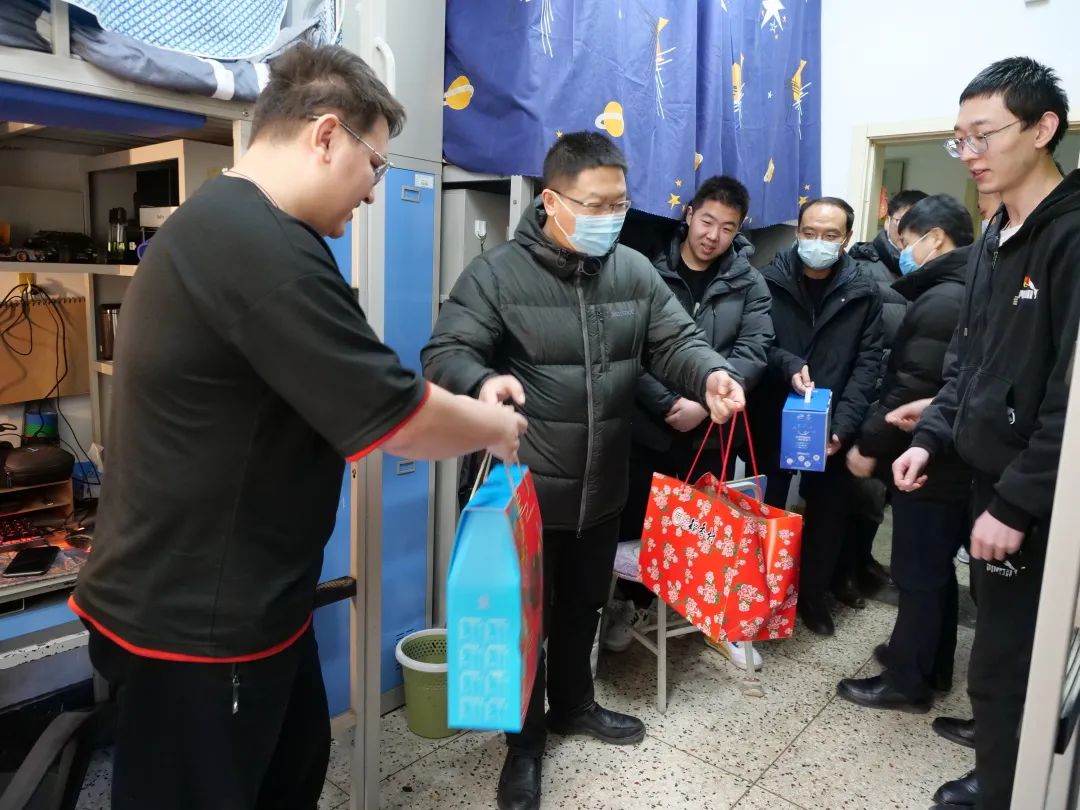 1月29日下午,北航副校长吕卫锋,学生工作部、研究生工作部部长宋晓东等;动力学院院长闫晓军,学院党委书记董卓宁等到宿舍楼慰问留校学生,与学生们亲切交流,询问留校学生的学业生活情况,并送去春节慰问品。