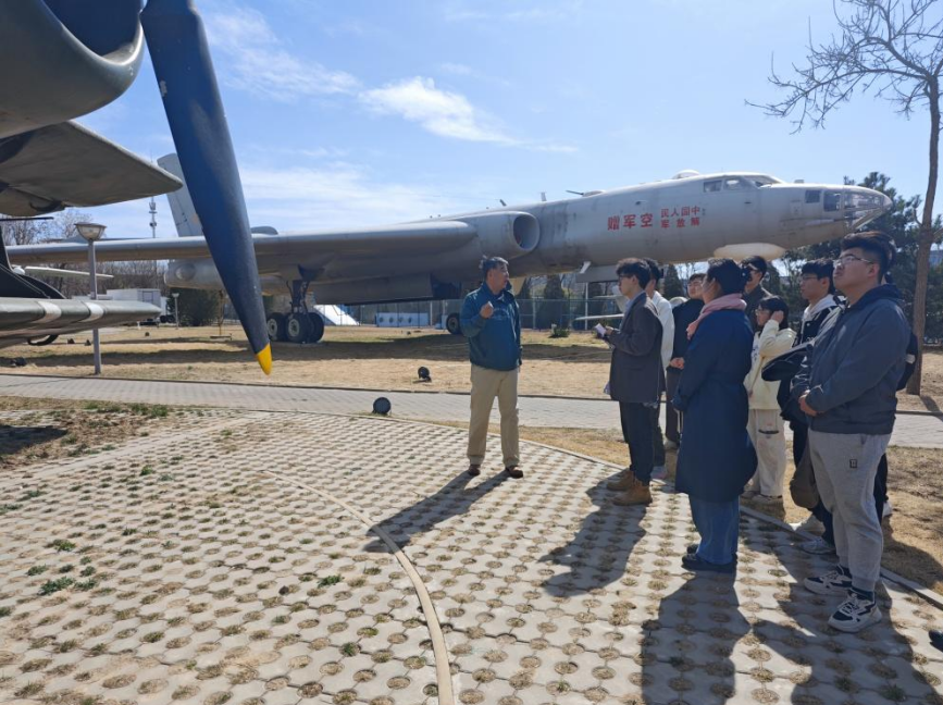 面对轰-6轰炸机、运-8型多用途运输机、歼-7战斗机等诸多珍贵展品,韩国军教授从各架飞机的独特结构布局、技术特点及服役过程等角度倾囊相授,并向宣讲团成员们分享了各自生动有趣的背景故事。在讲解的过程中,韩教授结合自己身为北航教师的切身感受,悉心指导宣讲团成员要怀揣赤诚之心,以爱国奉献的红色基因为内核,构建科技-人文叙事结构,既要解码大国重器的工作原理,也要深耕永不言弃的精神图腾。