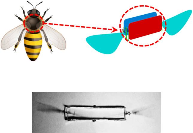 为解决上述问题,北航与加州大学Berkeley分校合作,提出了一种新结构形式的微扑翼静电驱动器。该驱动器基于航空领域机翼或者叶片的“颤振”原理,采用直流电源作为输入,将电能转换为机械能,使金属微梁在静电场中产生大幅的自激振动,继而带动翅膀实现仿生扑动(图2)。与以往的微扑翼驱动器相比,该装置在工作原理上更接近昆虫飞行肌肉的“自激”振动,在驱动效率和微型化方面也很有优势。在后续研究中,北航将主要负责驱动器的结构和气动优化设计,加州大学主要负责MEMS相关研究,以便进一步优化驱动器结构,提高驱动器的输出升力,最终实现飞行器的自主飞行。