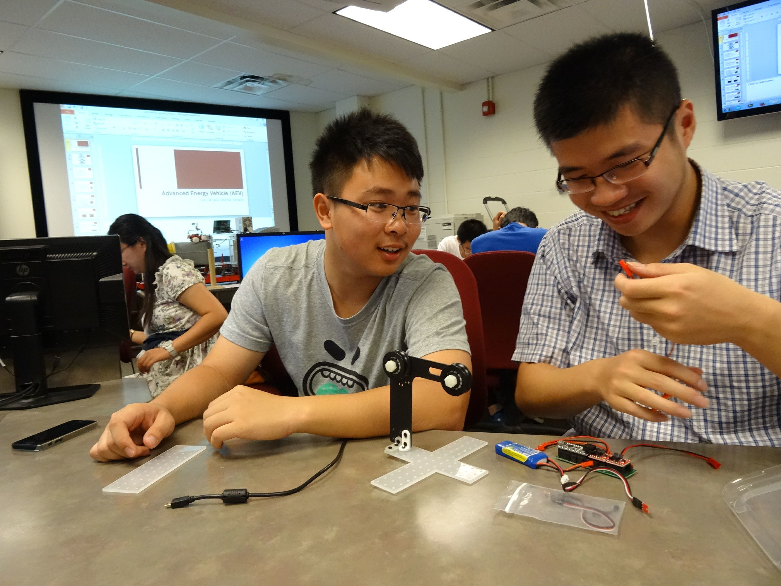 在俄亥俄州立大学交流学习期间,交流团成员学习了由俄亥俄州立大学工程学院开设,Clifford Whitfield教授主讲的AEV(advanced energy vehicle)课程。经过两周AEV课程的学习,完成了飞行器组装、动力系统装配、程序编程、风洞实验、试车、动力效率计算等工作,同学们初步接触了arduino和MATLAB的程序设计,学习了智能控制和航空工程方面的基础知识,掌握了工程学领域的基础实验思路和方法。同时此次课程也让同学们亲身参与了一次精简版的航空科研活动,让同学们对未来将会从事的工作有了更直观的了解,也为其今后的科技实践提供了不少宝贵思路。此外,同学们在俄亥俄州立大学还聆听了关于美国历史文化、政治制度与社会构成的系列讲座,开拓了观察美国历史与文化的新视角,拓展了视野,增长了见识。