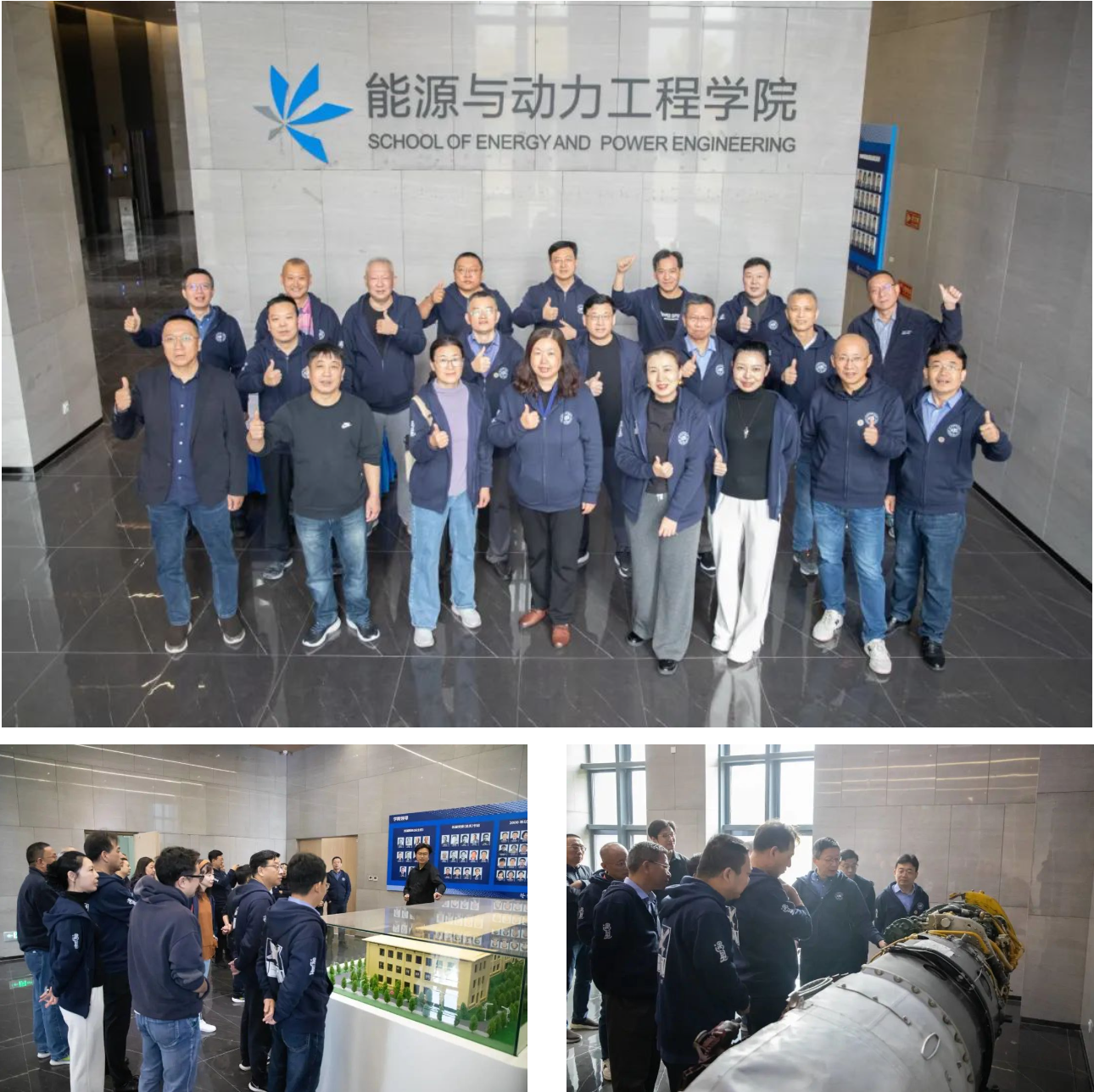 在沙河主楼F座大厅,李挺副院长为各位校友介绍了动力学院近些年的发展,89级校友刘宝杰教授为大家介绍了大厅展品RD-10涡喷发动机的前世今生。大家追忆往昔,怀念当年的老师和学院领导,并在大厅合影留念。